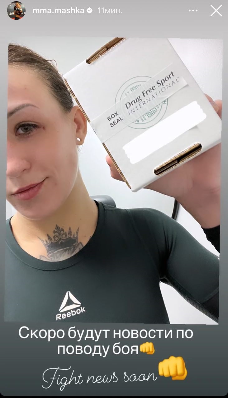 13 февраля 2024 года Мария выложила в сториз фото с коробочкой, вероятнее всего, с пробирками для сдачи теста на допинг, и подписала его следующим образом: "Скоро будут новости по поводу боя".