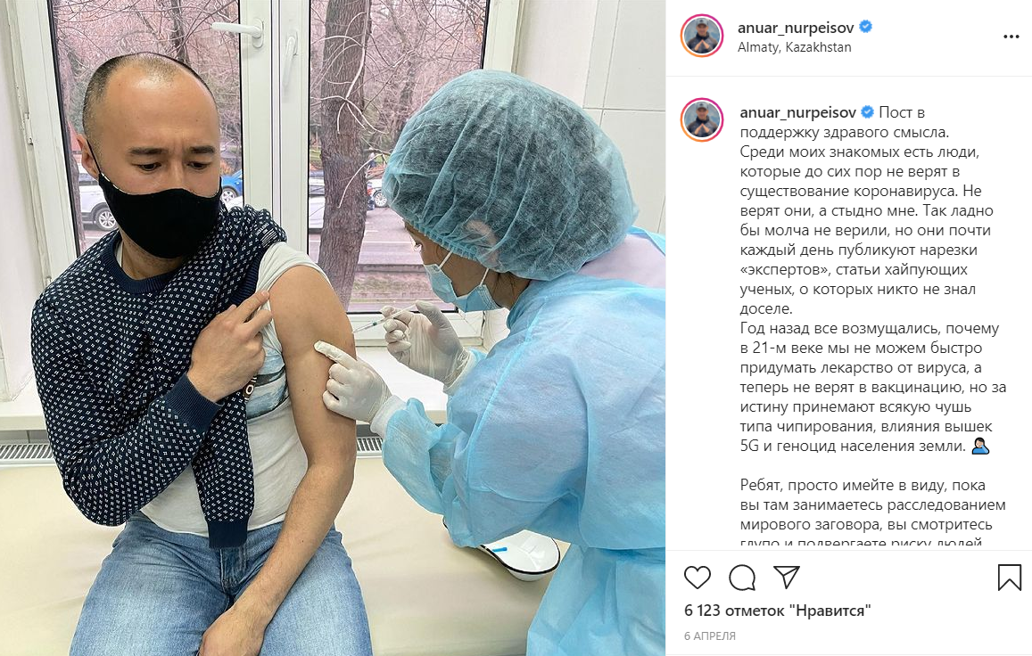 Не так давно известный казахстанский продюсер и интервьюер Тимур Балымбетов выложил в соцсетях пост, где рассказал, что получил вакцину от коронавирусной инфекции. Он показал свое фото после введения ему второго компонента.