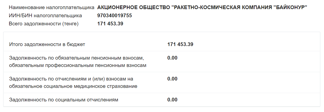 Мы проверили компанию на наличие налоговых задолженностей. Оказалось, что за ней имеется долг в размере 171 тысячи тенге.