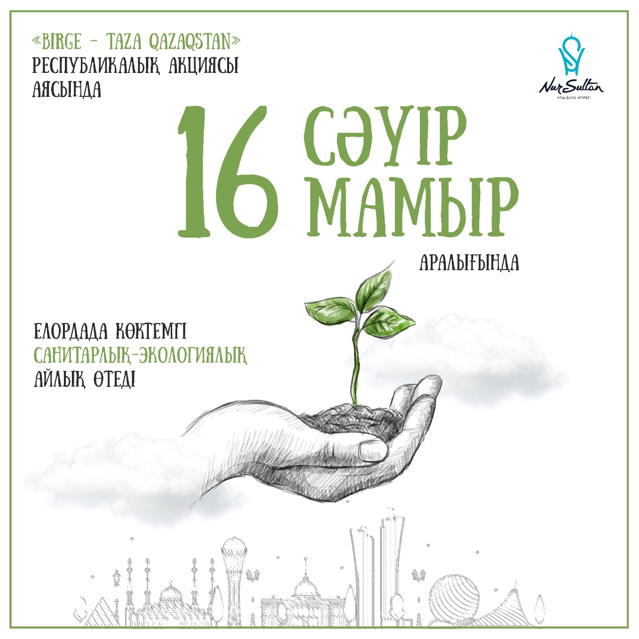 В рамках республиканской акции «Birge – taza Qazaqstan» в столице на еженедельных субботниках ожидается, что участие примут более 80 тыс. человек, 10 тыс. предприятий и организаций. В рамках проведенной экологической акции также будет произведена уборка парков и скверов на общей площади более 5,5 млн м2, будет высажено свыше 12 тысяч саженцев.