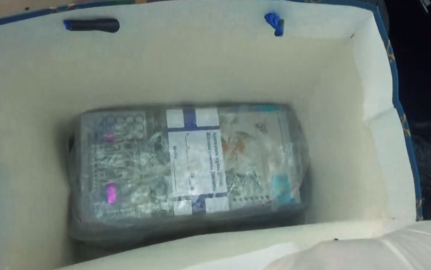 В ролике, опубликованном ведомством, запечатлен момент ареста. У задержанного был изъят пакет с деньгами.
