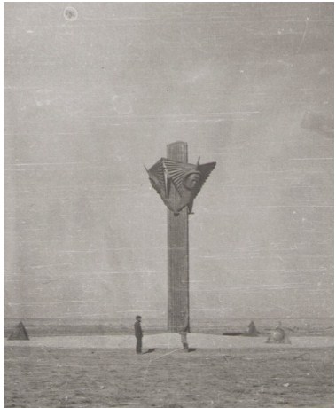 Первый вариант мемориала на месте гибели экипажа космического корабля "Союз 11". Сюрреалистический вид одинокой стелы посреди степи создавал особую атмосферу.В любом случае этот мемориал никто больше не увидит. В 2008 году его уничтожили охотники за цветметом. Сейчас на месте стелы стоит совсем простенький памятник из трёх каменных плит с фотографиями космонавтов.