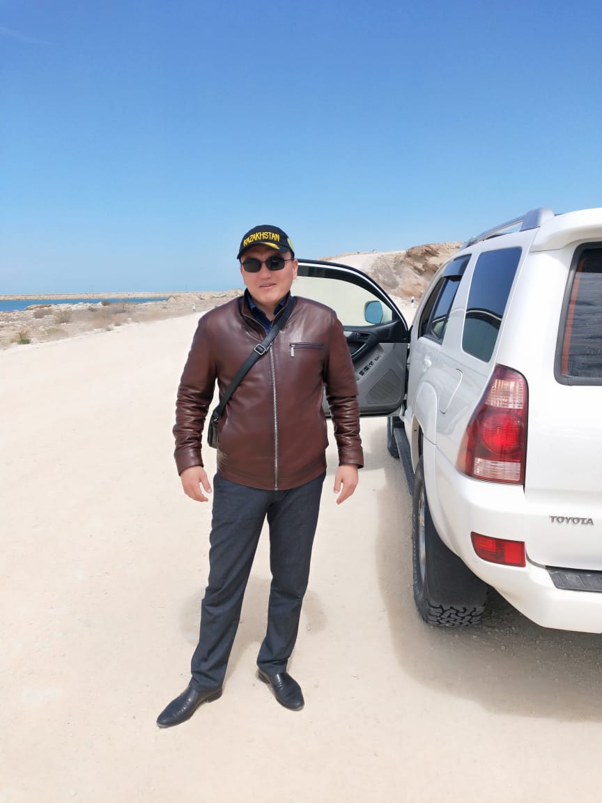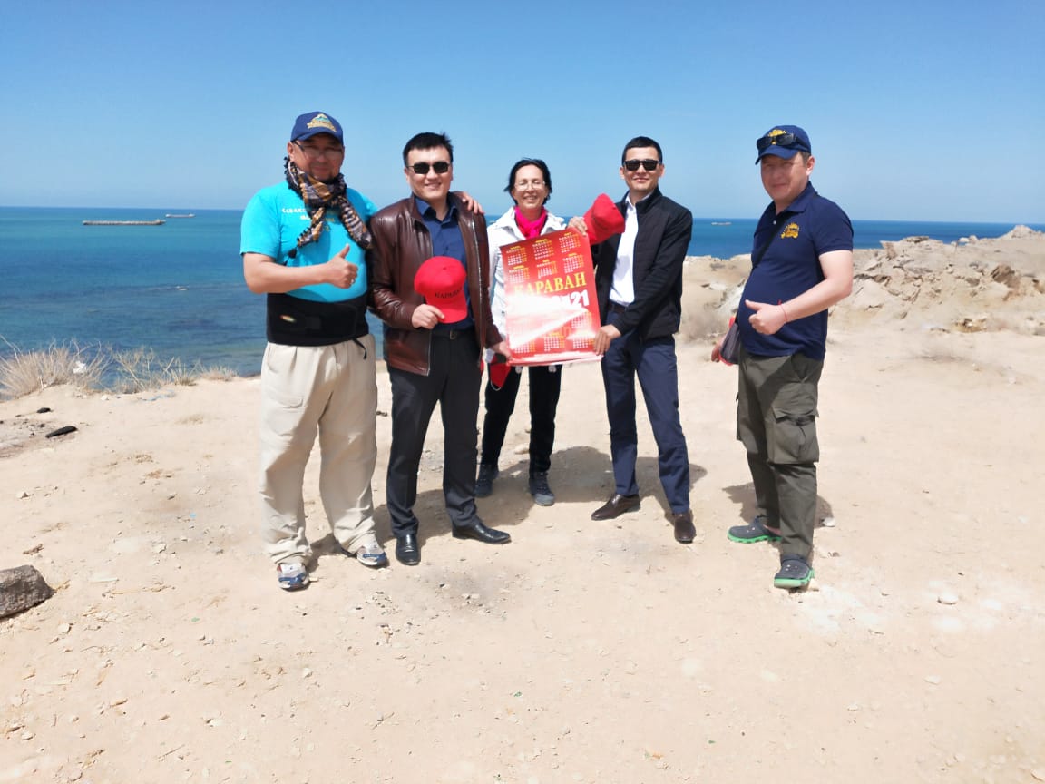 Фото с друзьями Ыкласом и Адилетом на память о нашей встрече на восточном берегу Каспийского моря.