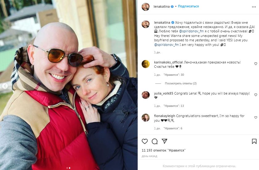 О романе Катиной и Спиридонова, который является генеральным директором процессингового центра для обработки платежей CloudPayments, стало известно в сентябре. Позже артистка прокомментировала отношения, назвав их служебным романом.