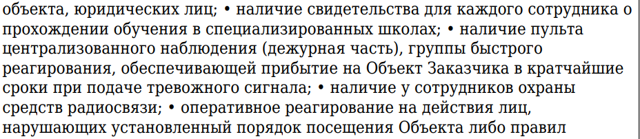 Согласно техспецификации, каждый из сотрудников обязан пройти обучение в специализированных школах, чтобы обеспечивать охрану объекта. Помимо этого, обязательно наличие группы быстрого реагирования, которая может оперативно сработать в случае ЧП на объекте.