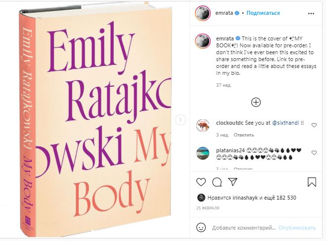 В начале этого года Эмили Ратаковски объявила о выходе своей книги «Мое тело», пишет Glamour.ru