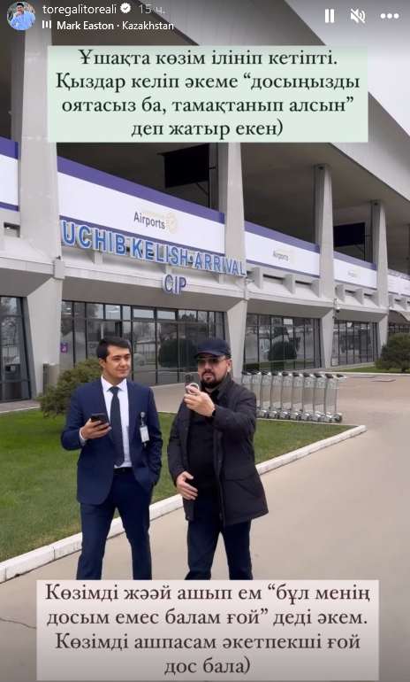 Попутчиком Торегали был его отец, передает Caravan.kz. Артист рассказал про курьезный случай, который произошел с ними во время полета.
