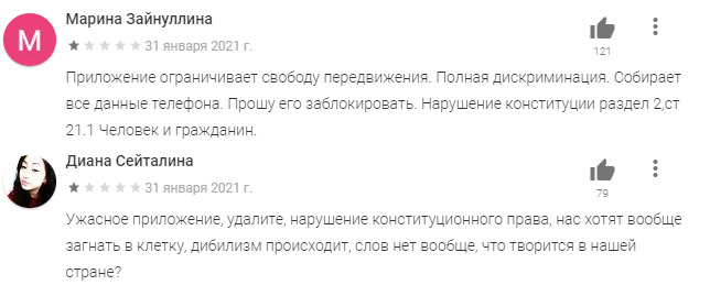 Кроме того, по мнению юриста, приложение действительно можно упрекнуть в нарушении правовых норм, так как оно препятствует свободному передвижению, посягает на тайну личной жизни и нарушает права потребителей.