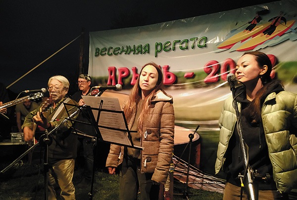 Поляна – это, по сути, огромный выездной лагерь. Немереное количество палаток, людей, которых привело сюда желание встретить близких себе по духу и взглядам на жизнь. Невдалеке – импровизированная сцена с огромным баннером: “Весенняя регата “Арысь-2022”, что указывает на обязательное вечернее музыкальное продолжение тусовки. А его многие ждут не меньше самой регаты.
