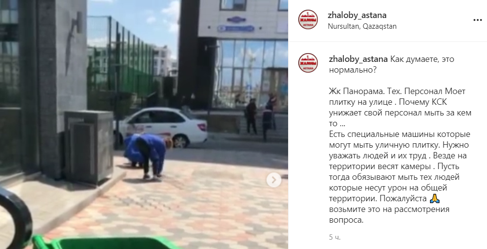 Труд техничек возмутил соцсети, передает Caravan.kz со ссылкой на группу @zhaloby_astana.