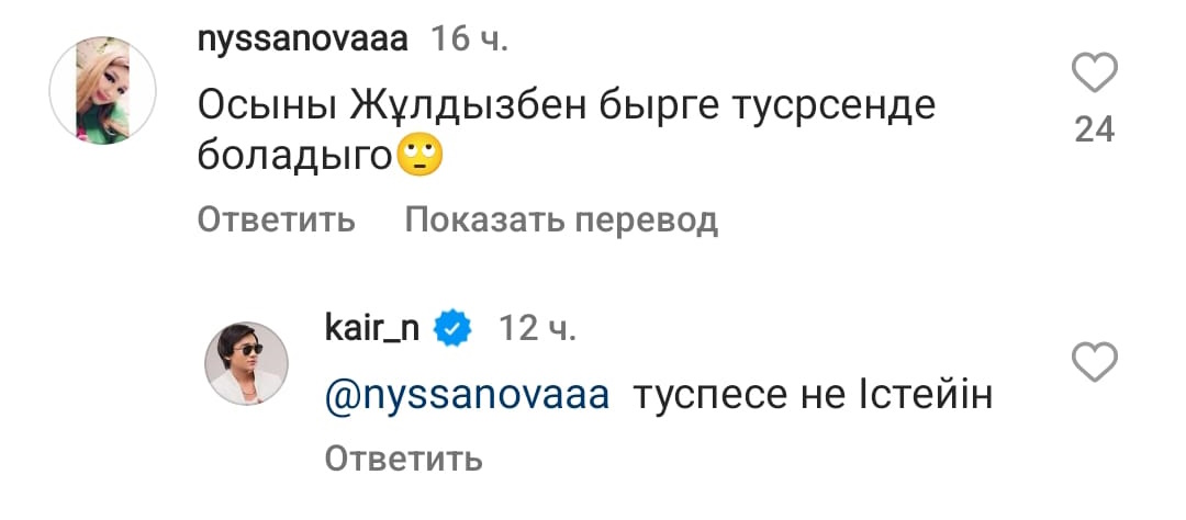 Подписчики артиста написали множество комментариев, обсуждая, Жулдыз ли в видео, а если не она, то почему.