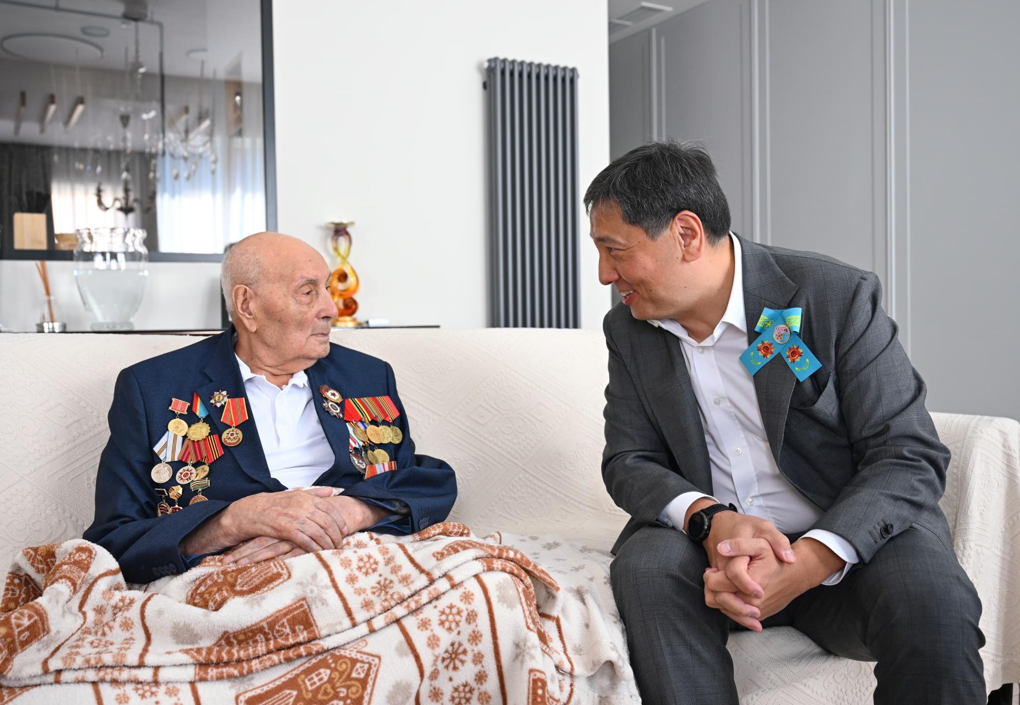 В преддверии праздника 9 мая аким Алматы Ерболат Досаев навестил ветеранов Великой Отечественной войны и поздравил их от имени Главы государства Касым-Жомарта Токаева.