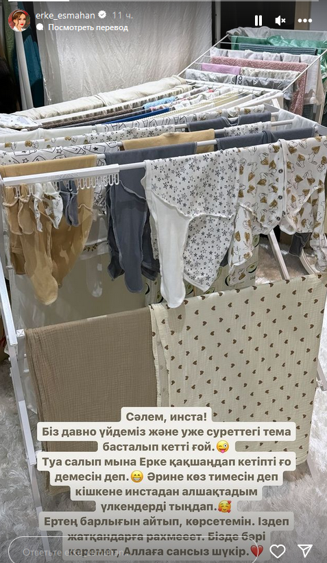 "Привет, инста! Мы давно дома, и уже началась тема на фото. Пишу, чтобы не говорили, что Ерке родила и исчезла.