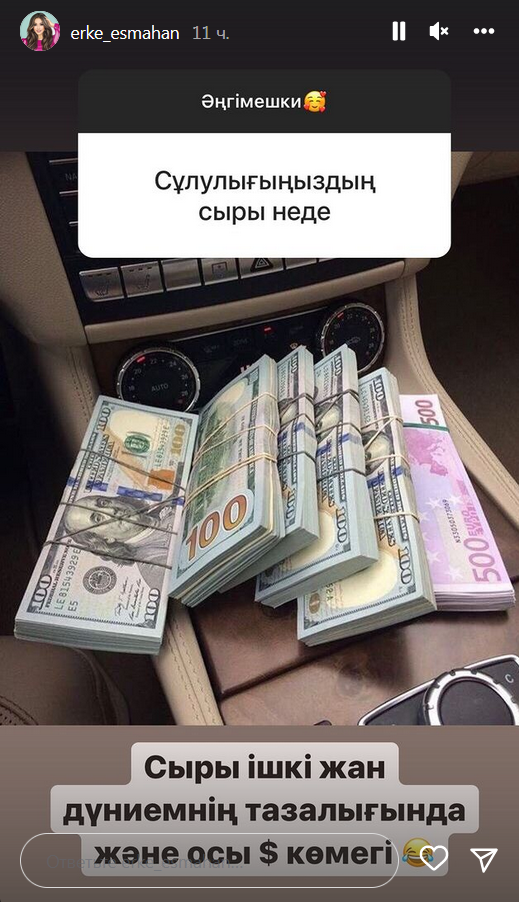 "Секрет — в чистоте моей души, внутреннего мира и в помощи этих денег", — написала Ерке.