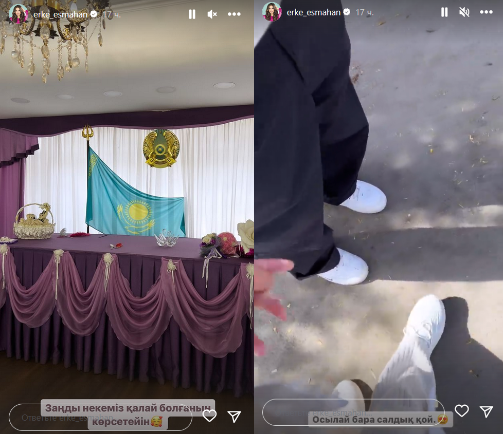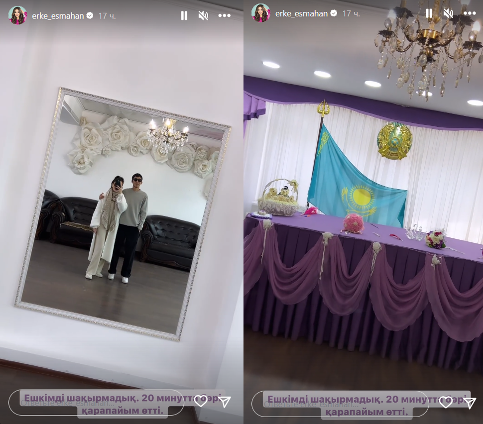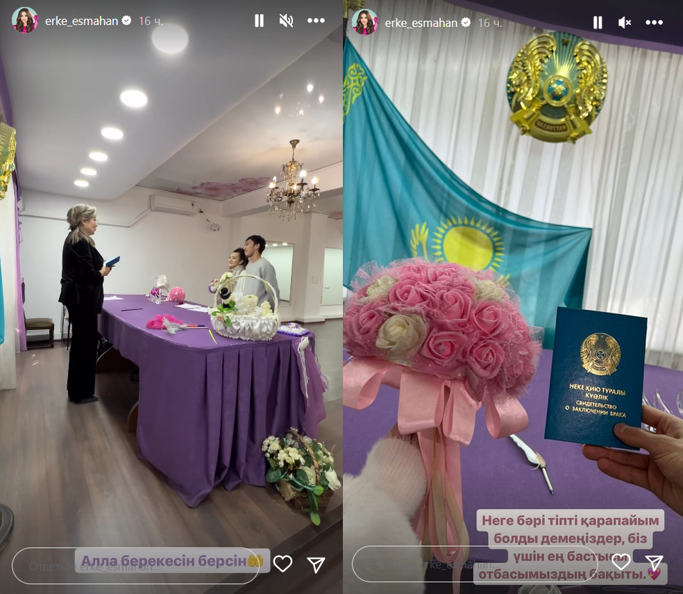 Теперь они окончательно узаконили свои отношения, передает медиа-портал Сaravan.kz. Ерке Есмахан в сторис показала, как все прошло. Молодожены выбрали ЗАГС Турксибского района и не стали специально наряжаться.