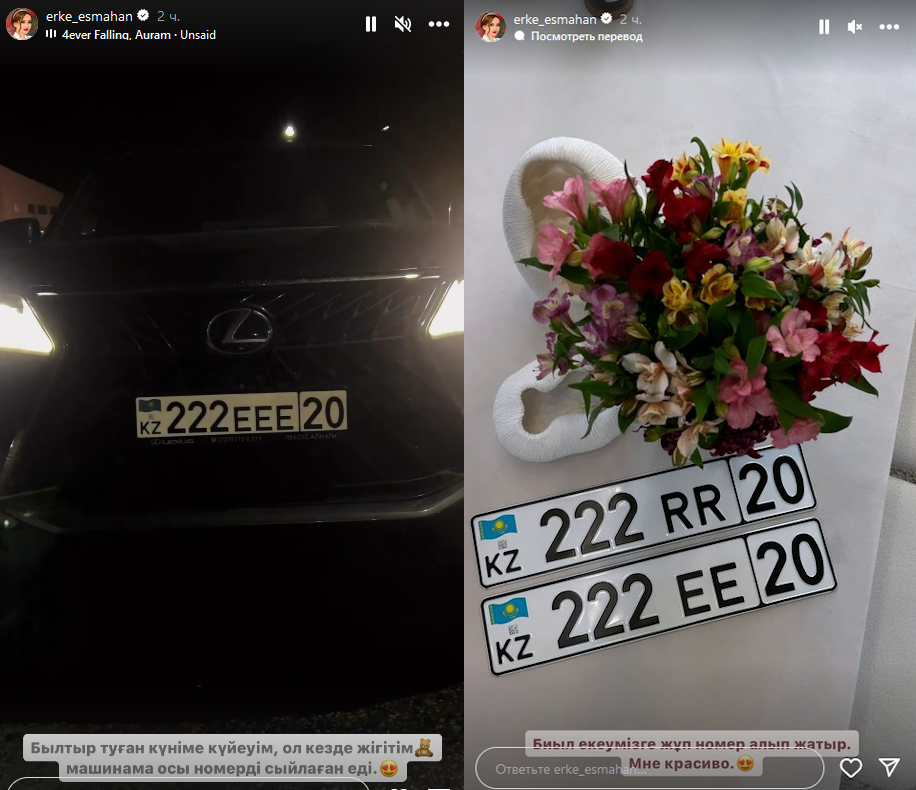 "В прошлом году на день рождения мой муж, тогда еще бойфренд, подарил мне этот автомобильный номер. В этом году купил нам парные номера. Мне красиво", — написала артистка.
