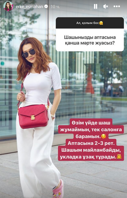 Подписчица спросила Ерке, как часто она моет голову, сообщает медиа-портал Caravan.kz.