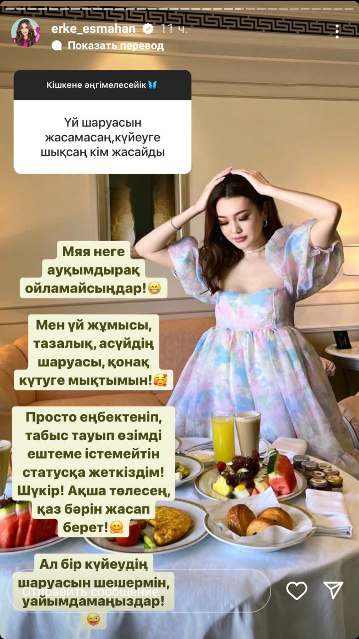 Подписчицы задали Ерке два связанных вопроса, передает Сaravan.kz.
