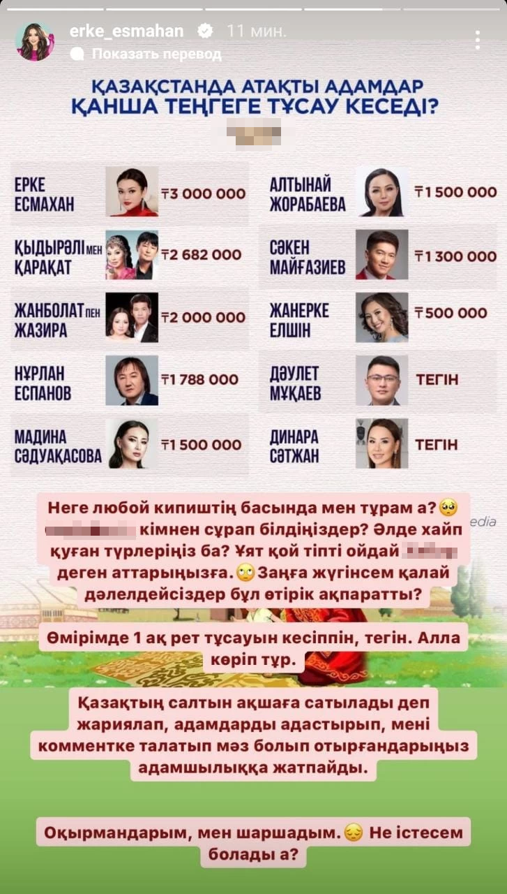 Это бесчеловечно — писать, что казахские традиции продаются за деньги, вводить людей в заблуждение, писать мне злые комментарии.
