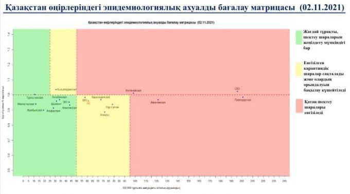 Матрица оценки эпидемиологической ситуации в регионах Казахстана на 2 ноября 2021 года