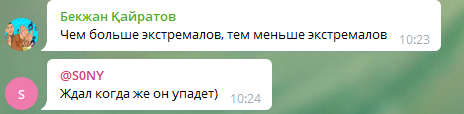 "Экстремалы", — подписали видео. На нём скейтер в шлеме держится за верёвку с поперечником, как на водных лыжах, и едет по Абая в сторону Байтурсынова на большой скорости. Также в кадре можно заметить два мопеда и предположить, что есть и третий, к которому должен крепиться трос.
