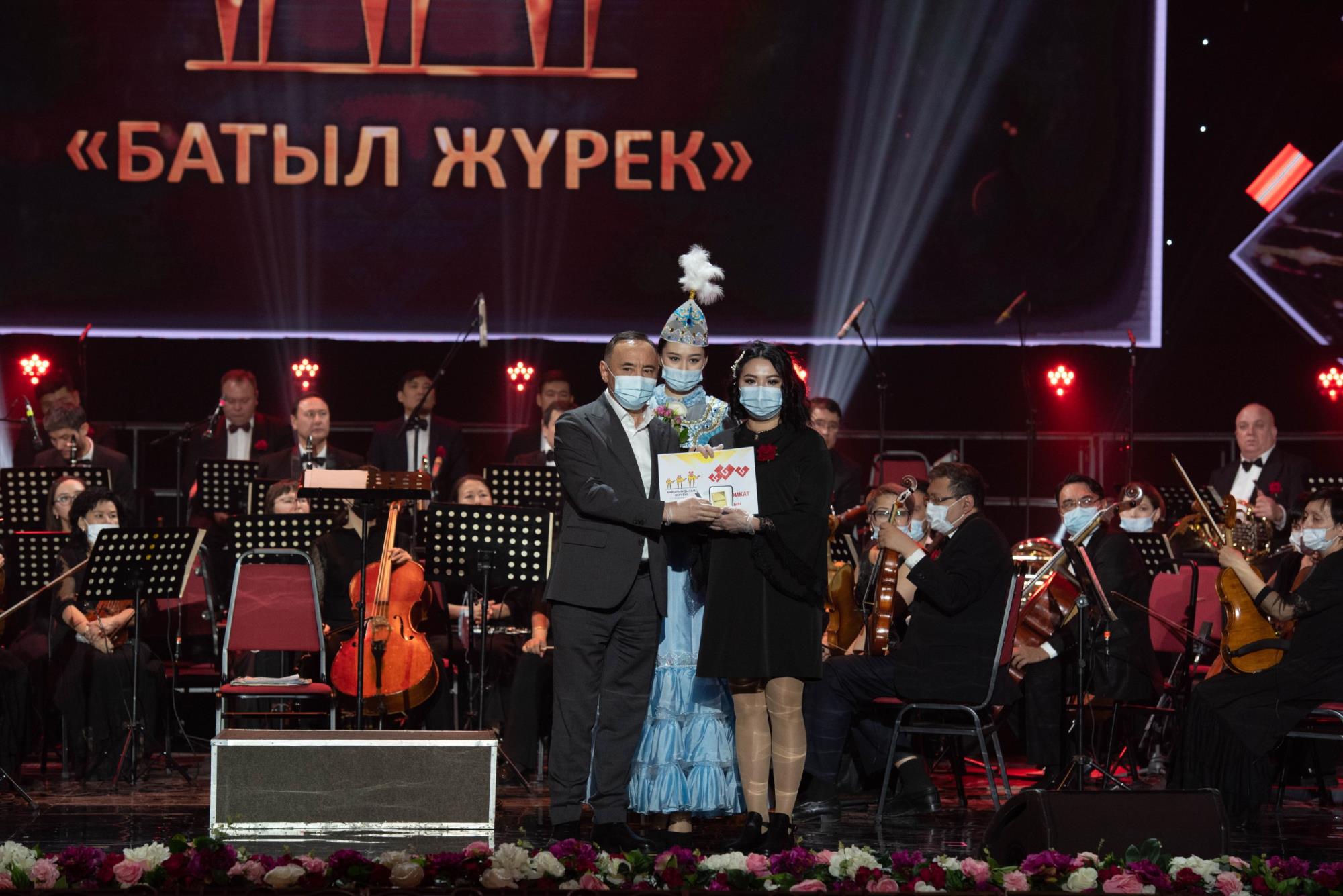 — в номинации «Бала жүрегі» — 16-летняя Дана Утебаева из Западно-Казахстанской области. Призовое место присуждено за отважный поступок в спасении 3-х детей при пожаре;