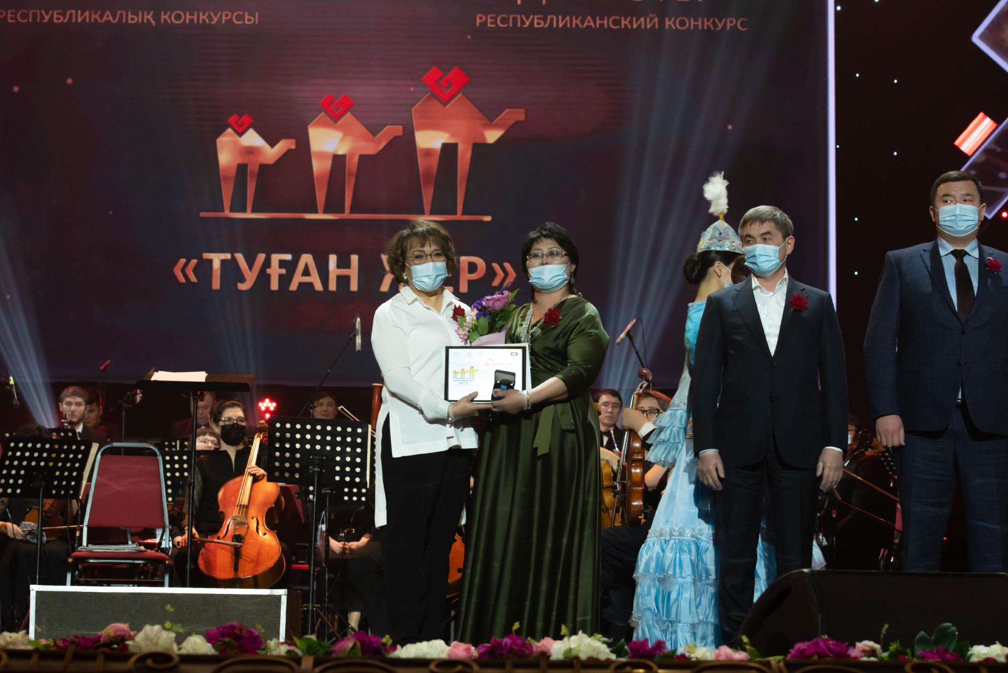 — в номинации «Бала жүрегі» — 16-летняя Дана Утебаева из Западно-Казахстанской области. Призовое место присуждено за отважный поступок в спасении 3-х детей при пожаре;