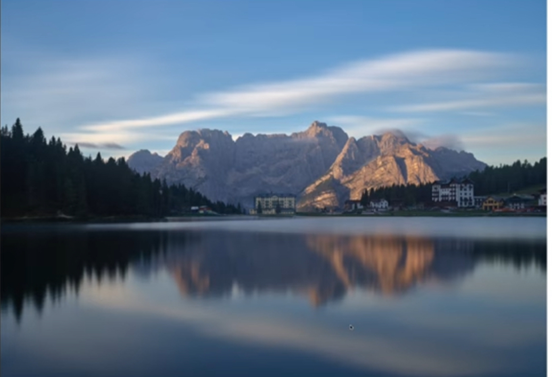 В третьем задании Кирилл хотел получить изображение озера Мизурина в Италии. AI предложил вид с деревней и лесом, как в реальном пейзаже, но цвет воды отличался от реального и приобрел зеленоватый оттенок. Фотограф подчеркнул, что на маленькой картинке люди вряд ли заметят разницу между АI и реальными фотографиями.