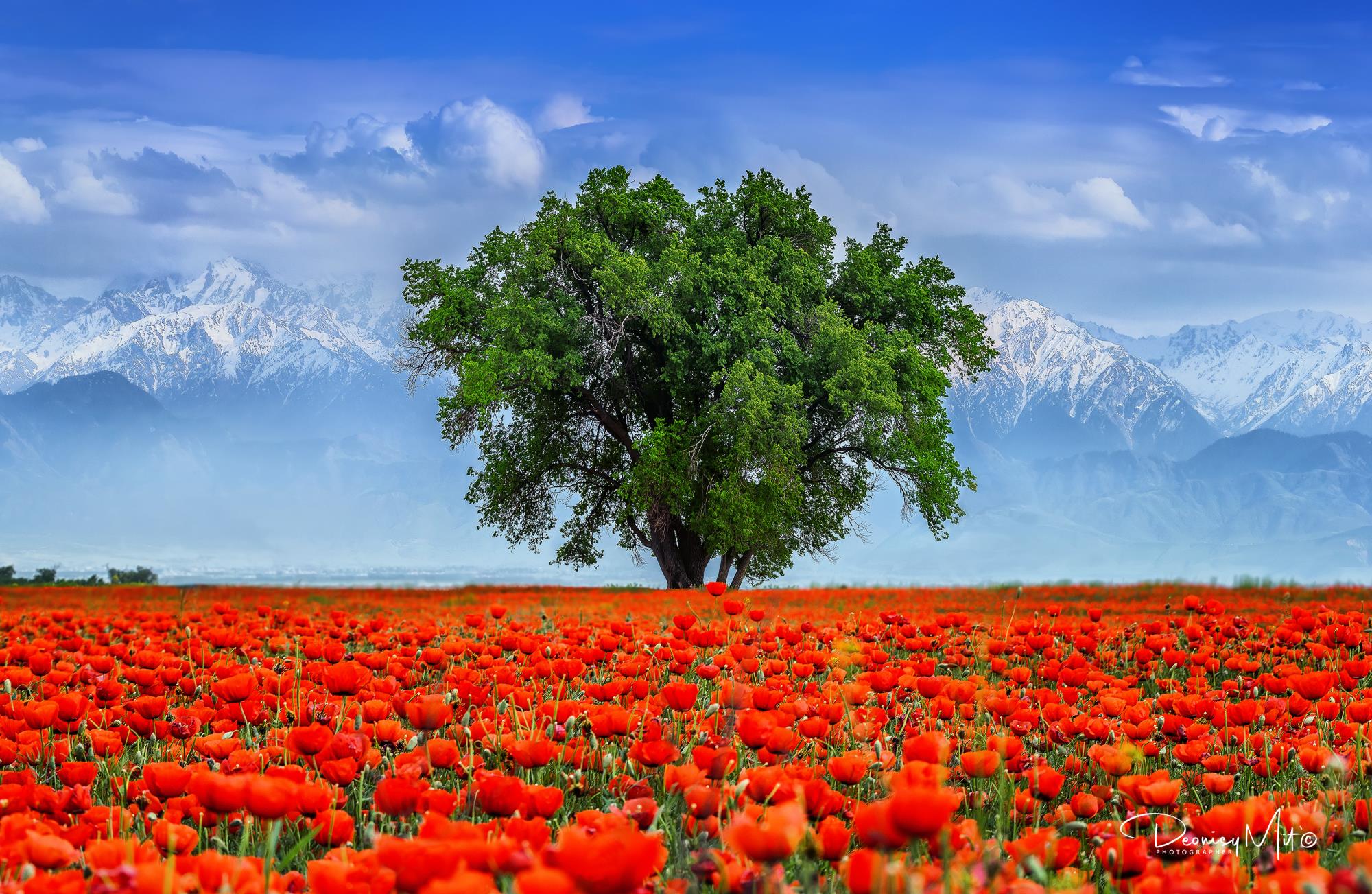 Вообще пользуются спросом все горы Заилийского Алатау, включая пик Талгар, цветущие маки на его фоне.