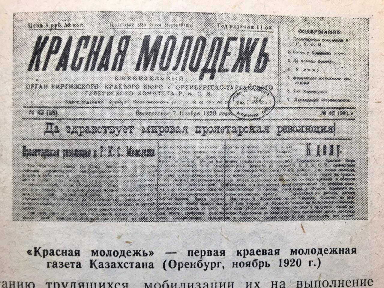Первый номер газеты, вышедшей в 1920 году под названием «Красная молодежь».
