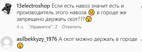 "Навоз? Где они его взяли?", "Если есть навоз, то есть и производитель этого навоза. В городе же запрещено держать скот", — пишут комментаторы под жалобой.