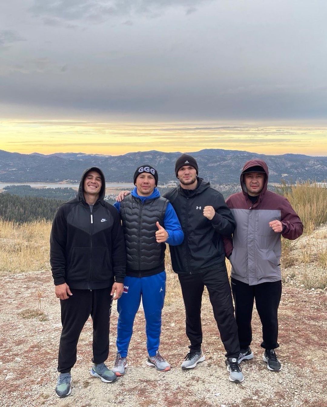 Геннадий Головкин подписал снимки так: "Хорошо вернуться в тренировочный лагерь. Рад всех видеть в добром здравии". На втором фото он стоит вместе с тренером Кристофером Камачо, другим казахстанским боксером Али Ахмедовым и братом Максимом.