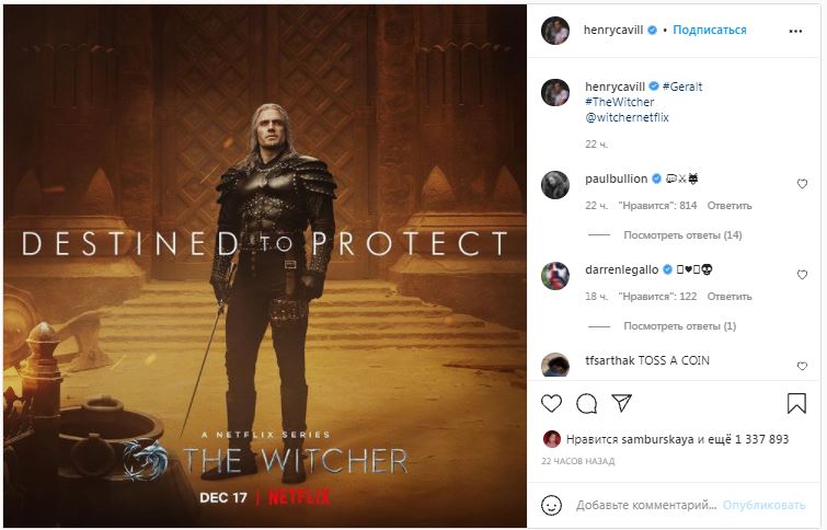 Британский актер Генри Кавилл опубликовал на своей странице в Instagram новый постер второго сезона фэнтези-сериала Netflix "Ведьмак", основанного на книгах польского писателя Анджея Сапковского, пишет РИА Новости