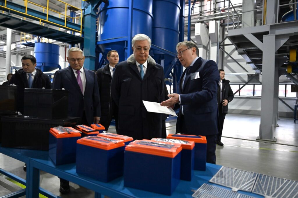 Учредитель и директор завода Серикбай Ажмагамбетов рассказал президенту о промышленных аккумуляторных батареях, которые используются в нефтегазовой, горнодобывающей, телекоммуникационной и железнодорожной отраслях, а также в качестве источника бесперебойной энергии в «зеленой» энергетике.