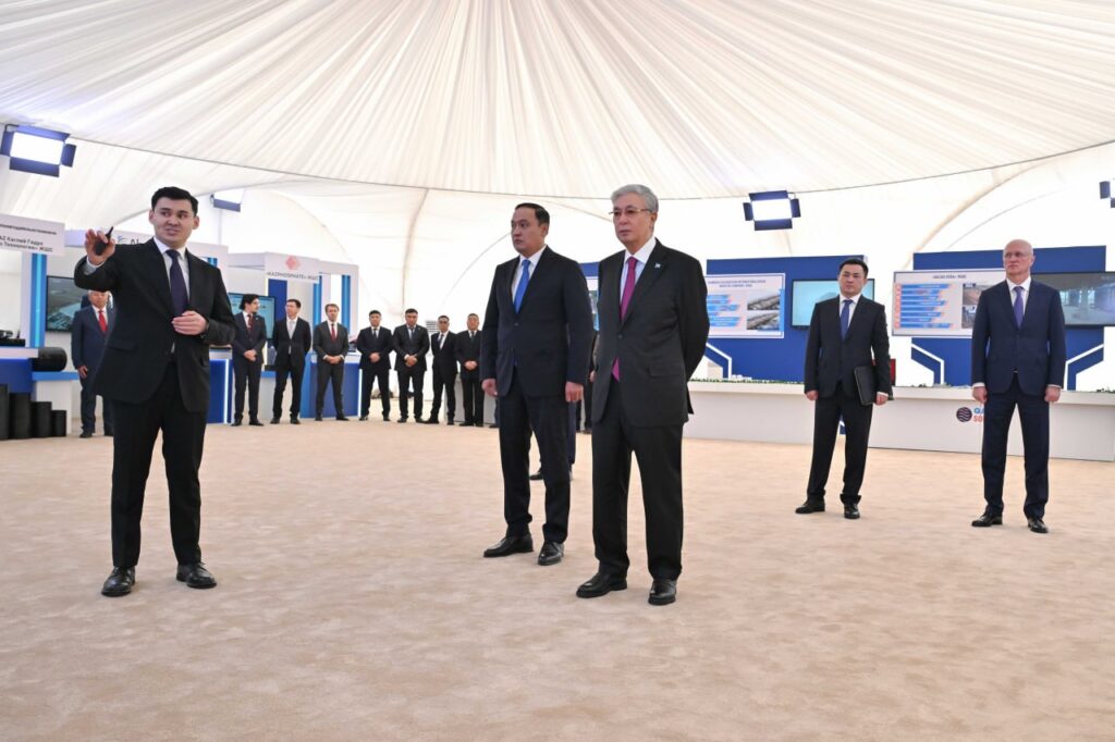 Главе государства были презентованы проекты ведущих предприятий региона. Касым-Жомарт Токаев также ознакомился с инвестиционным проектом по производству минеральных удобрений ТОО «Казфосфат» и строительством металлургического завода ТОО YONGGANG CENTRAL IRON and STEEL.