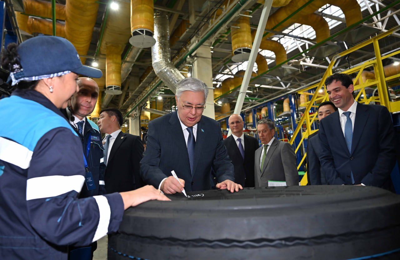 Генеральный директор ЗАО «Татнефть» Наиль Маганов и директор KamaTyresKZ Радий Бурганов рассказали главе государства о завершении строительно-монтажных работ и полной поставке технологического оборудования. Завод с инвестициями в 234 млрд тенге начал серийное производство продукции, в прошлом месяце он выпустил 30 тыс. шин. Ожидается, что в первый год работы завод произведет 1 млн единиц готовой продукции.