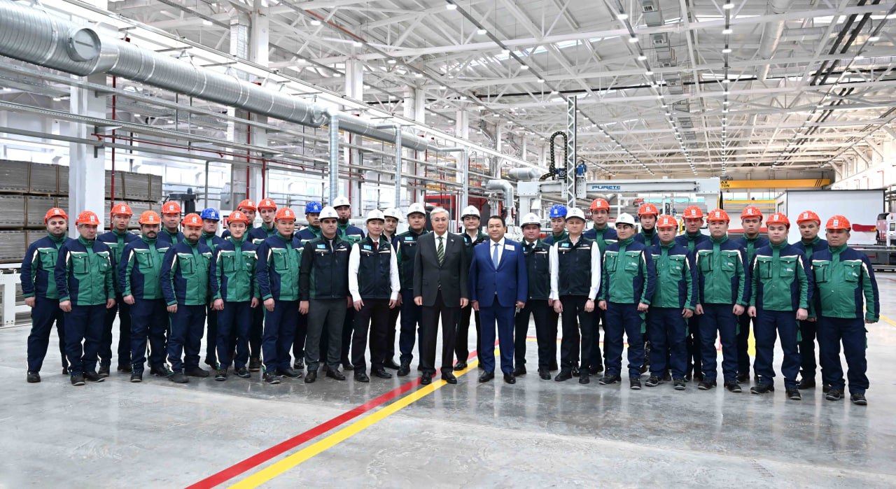 Касым-Жомарт Токаев отметил важность поддержки таких предприятий и подчеркнул необходимость перехода с импортных строительных материалов на отечественную продукцию. Он пообщался с работниками завода и пожелал им успехов в работе.