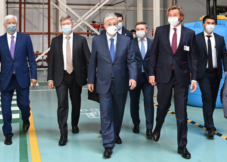 Глава государства ознакомился с производственным процессом и выпускаемой продукцией, а также заслушал информацию о текущей деятельности и планах дальнейшей технологической модернизации.