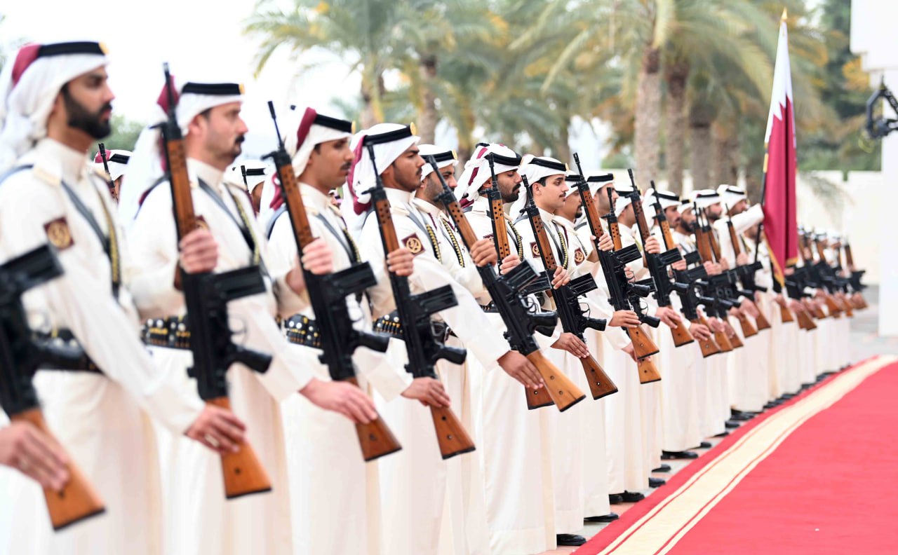 Начальник почетного караула отдал рапорт руководителям двух стран. После исполнения гимнов Казахстана и Катара Касым-Жомарт Токаев и шейх Тамим бен Хамад Аль Тани представили друг другу членов официальных делегаций.