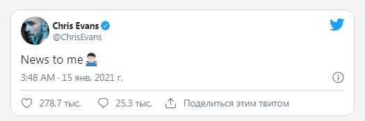 Председатель Marvel имел в виду запись Эванса в Twitter, в которой он сообщил, что ничего не знает о своем возвращении.
