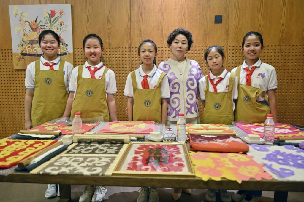 Высокие гости также стали свидетелями мастер-класса по валянию войлока для пекинских детей.