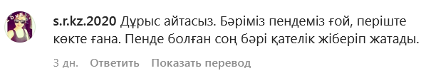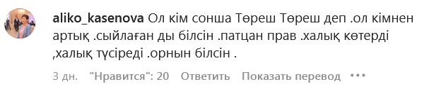 Публикация набрала почти 2 тысячи лайков, в том числе от боксера Айдоса Ербосынулы, а также почти 300 комментариев. Некоторые люди согласились с Кайратом.