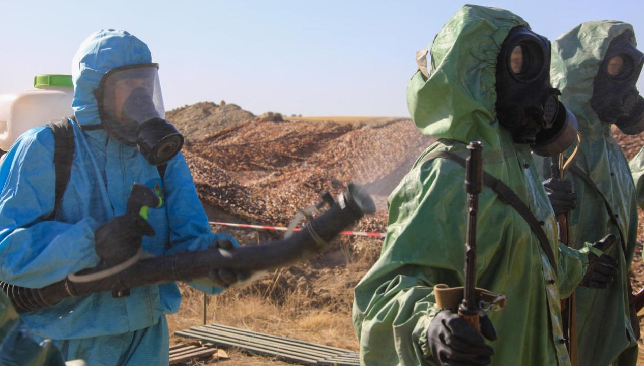 Наблюдаю, что военнослужащие проводят биологическую разведку объектов и местности с использованием современного оборудования. Офицеры, контрактники, солдаты срочной службы – все подвергаются специальной обработке. Административные и жилые помещения, вооружение и техника тоже обрабатываются специальным химическим раствором.