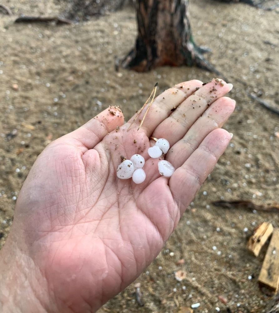 На смену ясной погоде в конце лета внезапно пришли осадки. За большой тучей последовал град размером с небольшой орех. На данный момент осадки прекратились.