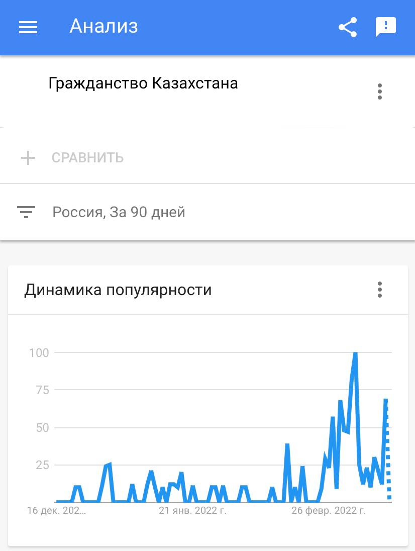 В сегодняшнем материале Caravan.kz мы решили рассказать вам о тех запросах среди жителей России за последние три месяца, которые так или иначе связаны с Казахстаном и продемонстрировали рост на фоне конфликта с Украиной. Миграция казахстанцев в Россию пойдет на спад – прогноз эксперта