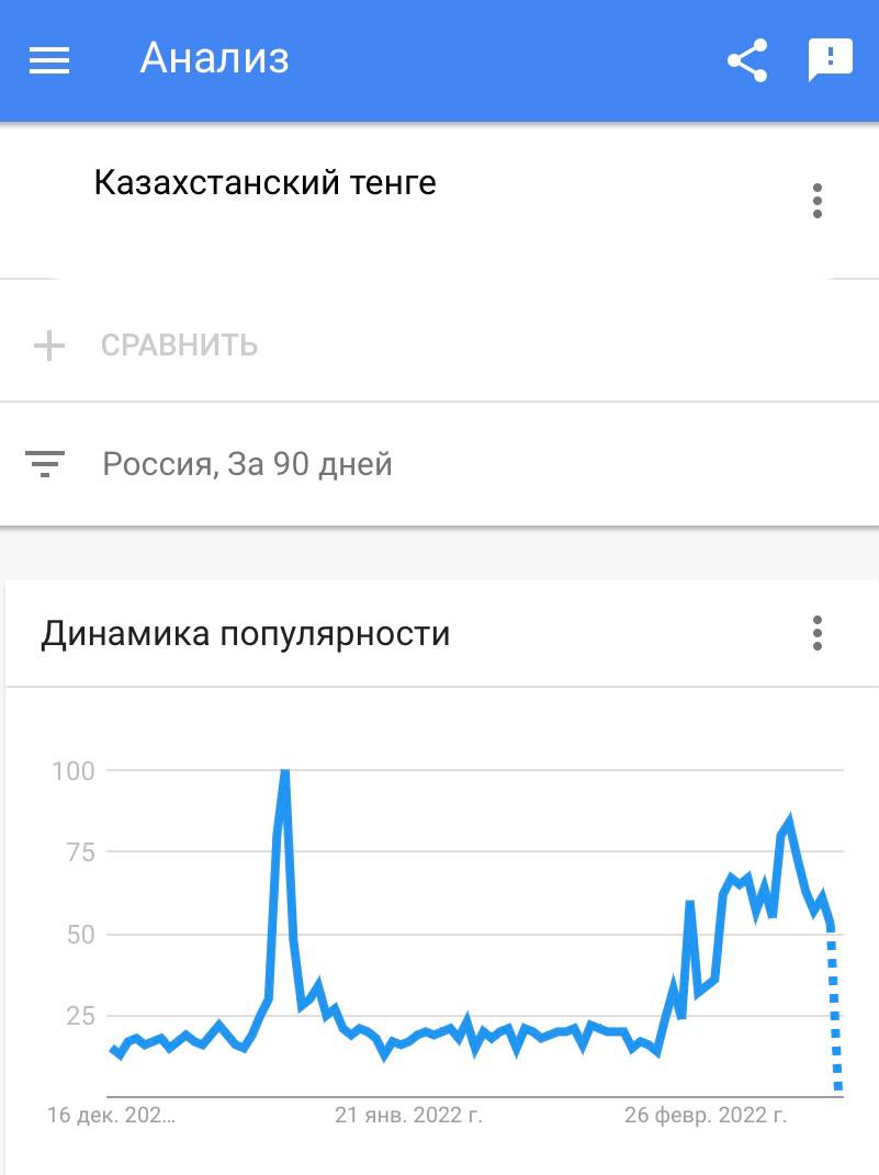 Довольно популярным оказался запрос касаемо "казахстанского тенге", и динамика вокруг него в России довольно резкая.
