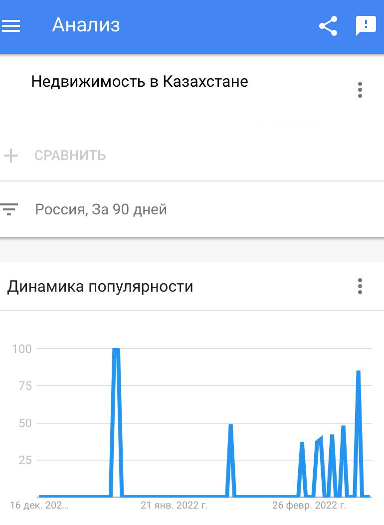 Но вернемся к запросам — среди прочих популярных вещей, что гуглят жители России, есть темы, связанные с вопросами недвижимости и туризма в Казахстане.