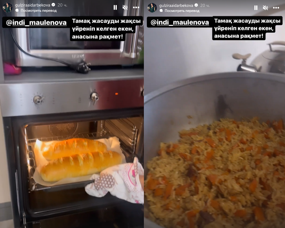 Недавно Зангар и Индира вернулись из зарубежной поездки, передает медиапортал Сaravan.kz. Сейчас они находятся у родителей Зангара в Алматы. Гульзира Айдарбекова показала, как проводит время с новой келин. В ролике Индира печет хлеб и готовит плов. Свекровь отмечает, что она сделала батоны вместо привычных круглых буханок, и хвалит плов.