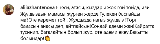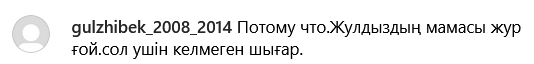Многие отметили, что на празднике присутствовали мать Жулдыз, которая редко появляется в кадре на семейных торжествах, и бывшая жена Зангара Нуртаса, однако отсутствовали родители Кайрата Нуртаса. Некоторые комментаторы предположили, что матери Жулдыз и Кайрата находятся в ссоре и поэтому не посещают одни и те же мероприятия.