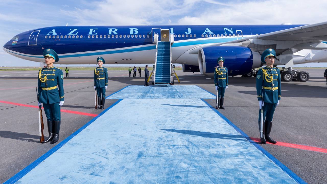 Президента Азербайджана в столичном аэропорту встретил премьер-министр Казахстана Олжас Бектенов, передает Caravan.kz со ссылкой на пресс-службу правительства.